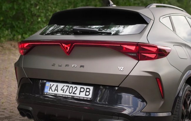 З корми оновлений Formentor відрізняється від попередника підсвіченим логотипом CUPRA та суцільною LED-смугою. Ці елементи видають справжнє світлове шоу. Спочатку засвічується логотип, а потім промені розходяться в сторони, до задніх ліхтарів. Заворожує!
